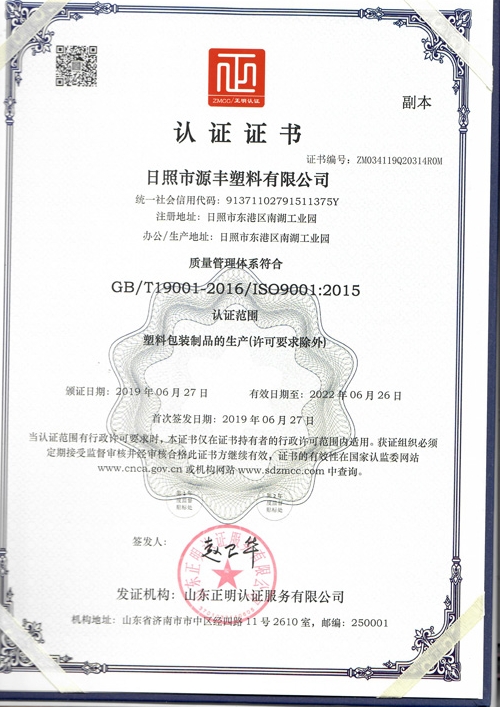 山東源豐塑料股份有限公司成立于2005年,占地幾十余畝,建筑面積1.5萬平方,總投資1億,普通車間工人100名,高級5名,紙塑袋生產(chǎn)能力5000萬條,日均15萬條,主要生產(chǎn)紙塑復(fù)合袋,閥口袋,彩印袋,方底三層紙袋,吹膜袋,多層紙袋,紙塑邊縫袋等系列。